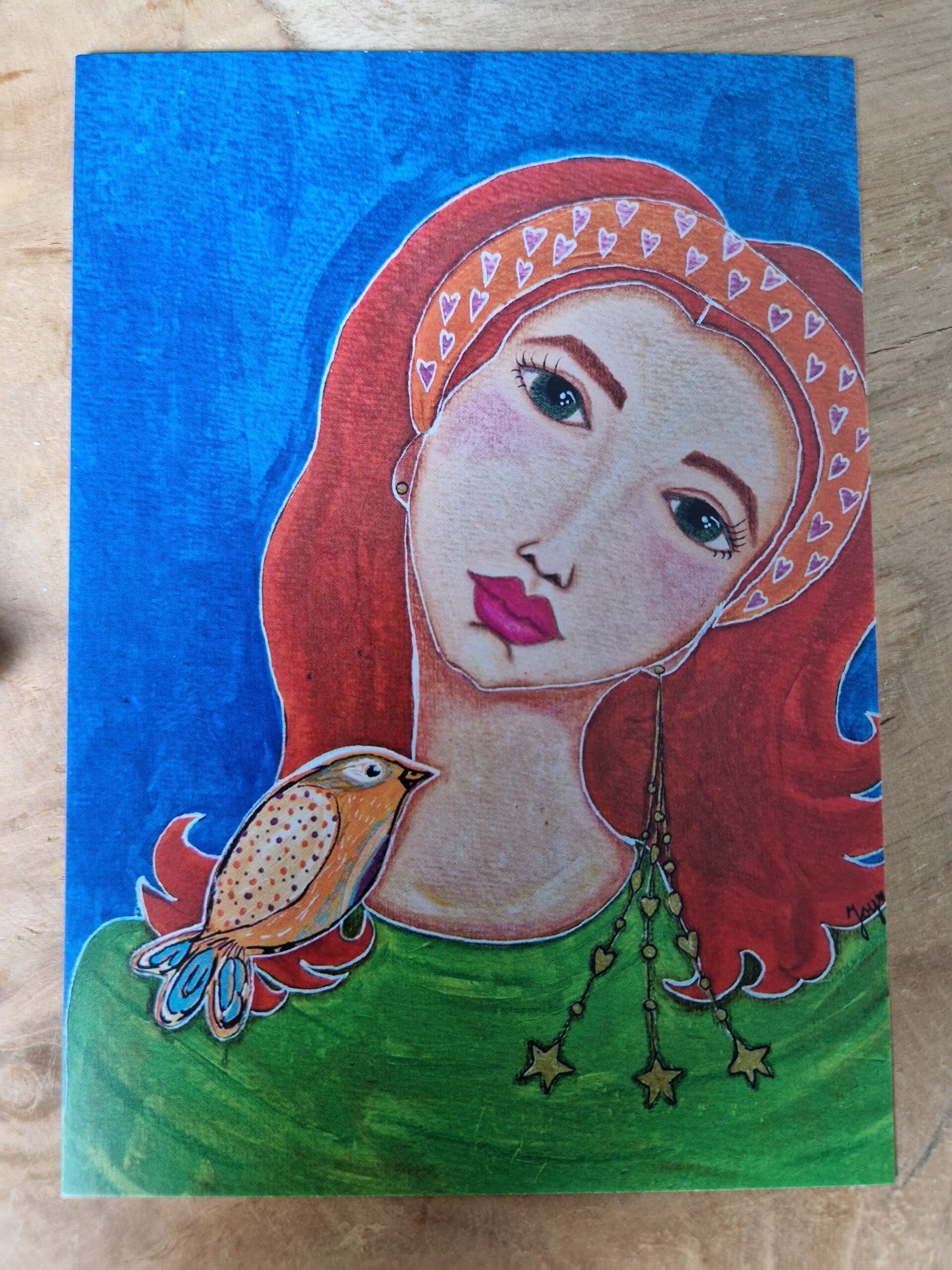 Een vogeltje op de schouder, een lieve blik, wie maak jij blij met dit kaartje?
