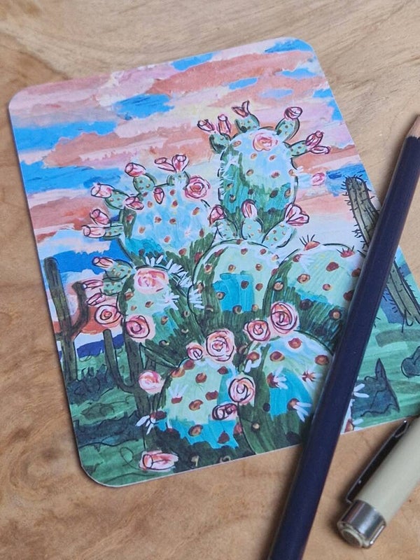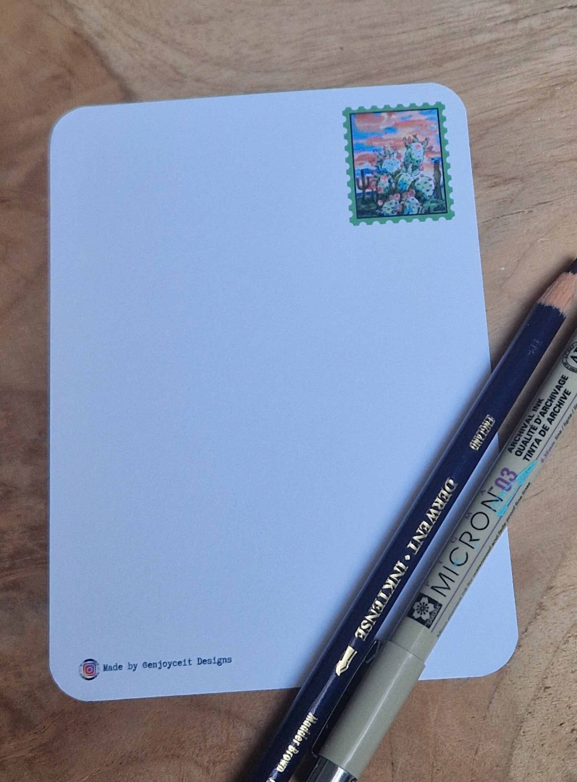 Wat een mooie planten zijn de cactussen toch, ondanks de stekels, een vrolijke kaart