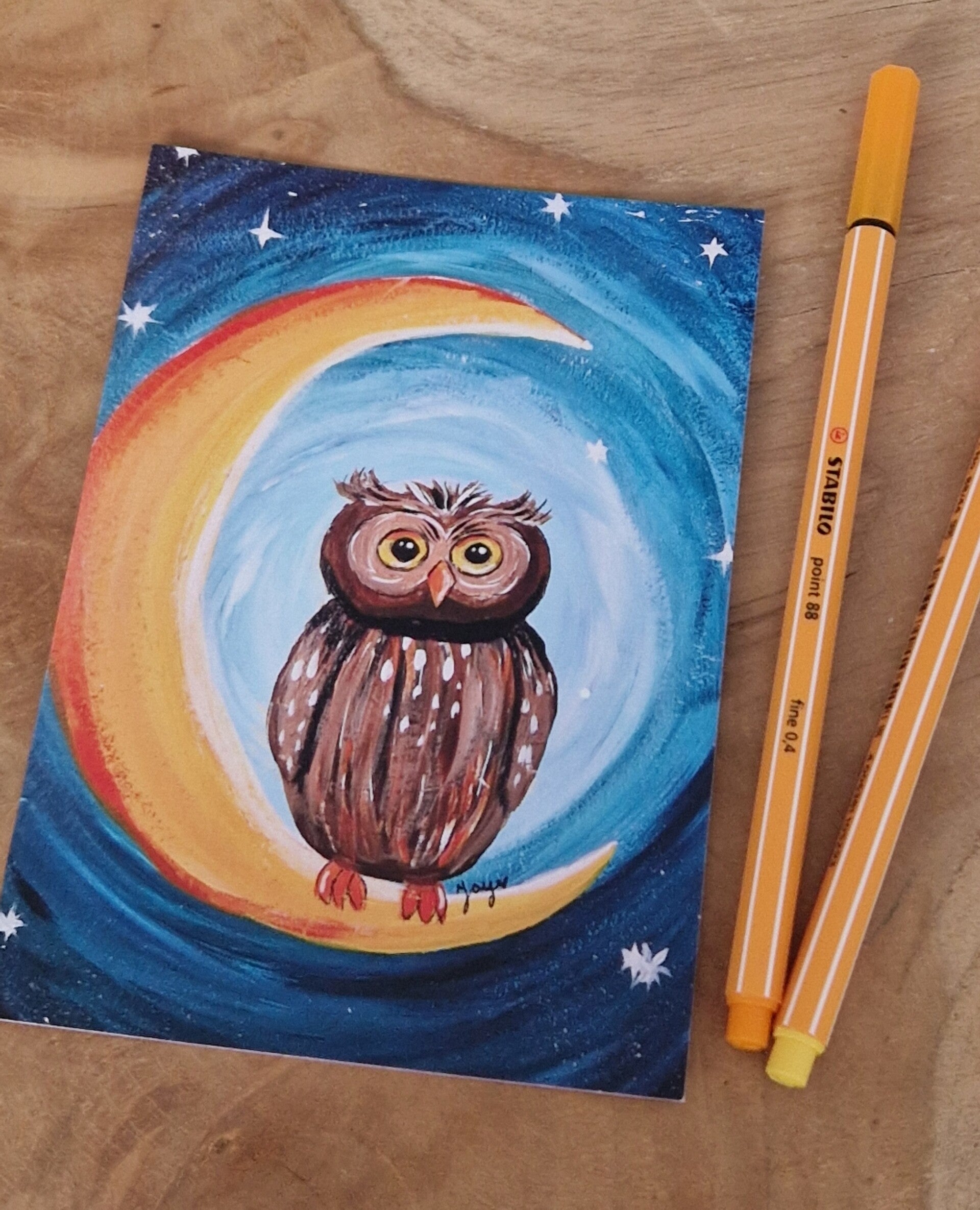 Een lief uiltje op de maan